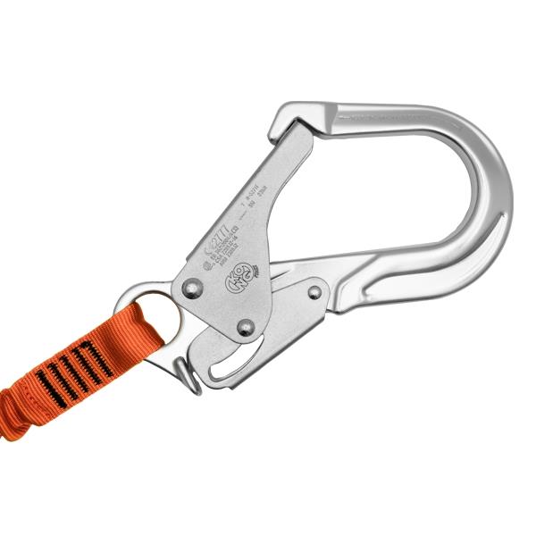 防坠落装置采用 30 毫米宽聚酰胺弹性吊带,可降低冲击力和操作人员受伤风险。