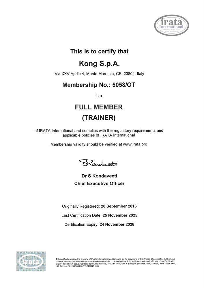 KONG erhielt am 15. April 2025 die APDOA-Zulassung (AP559) für PCDS Simplex-Systeme, bis zu zwei Personen, und Complex-Systeme, mehr als zwei Personen, die am baryzentrischen Haken oder an der Winde bei Hubschrauber-Rettungseinsätzen befestigt werden.